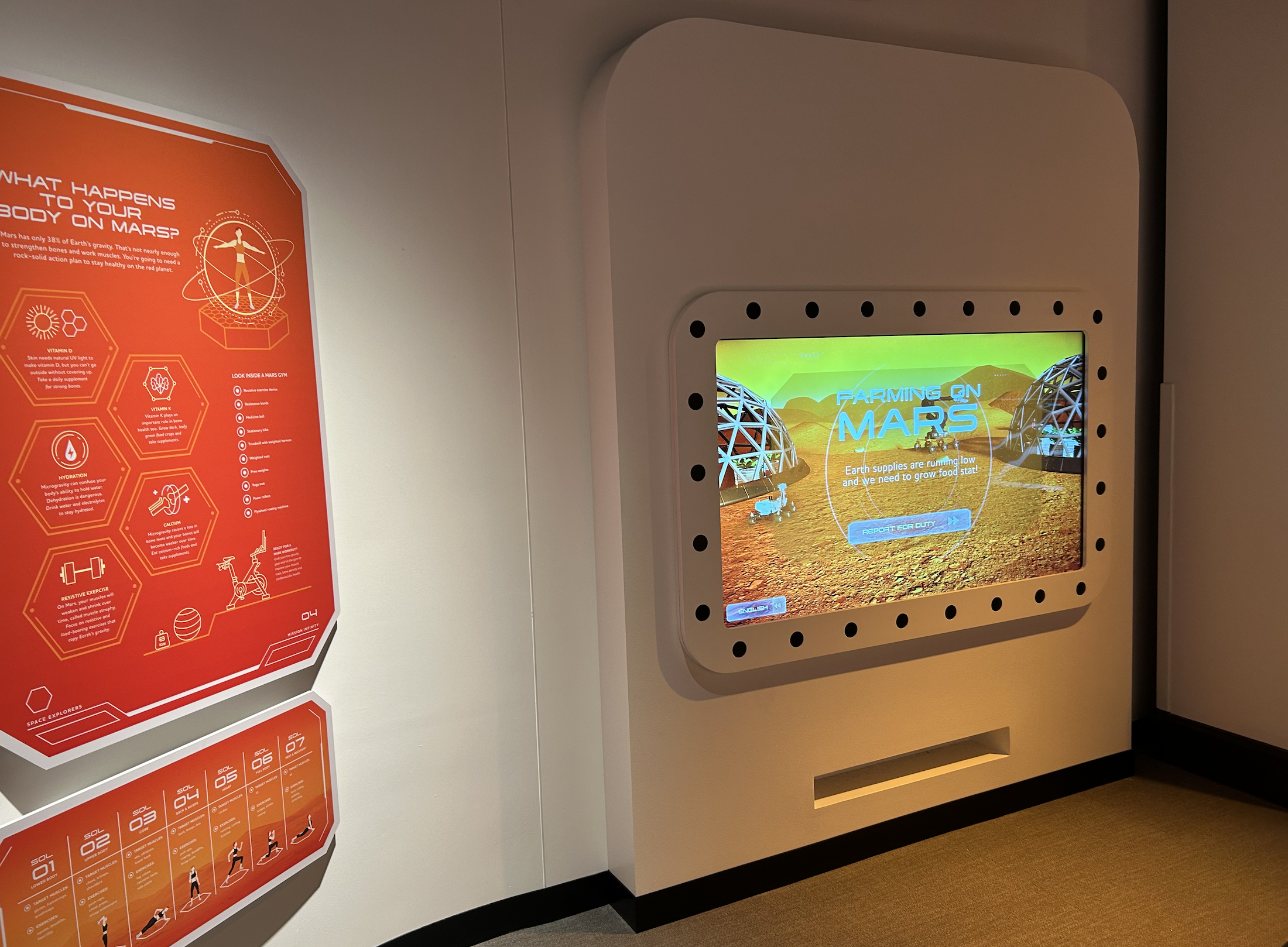 The Mars exhibit features an interactive farming game, a chance to program your own rover and a way to experience what it'd be like to play basketball in Mars' gravity.