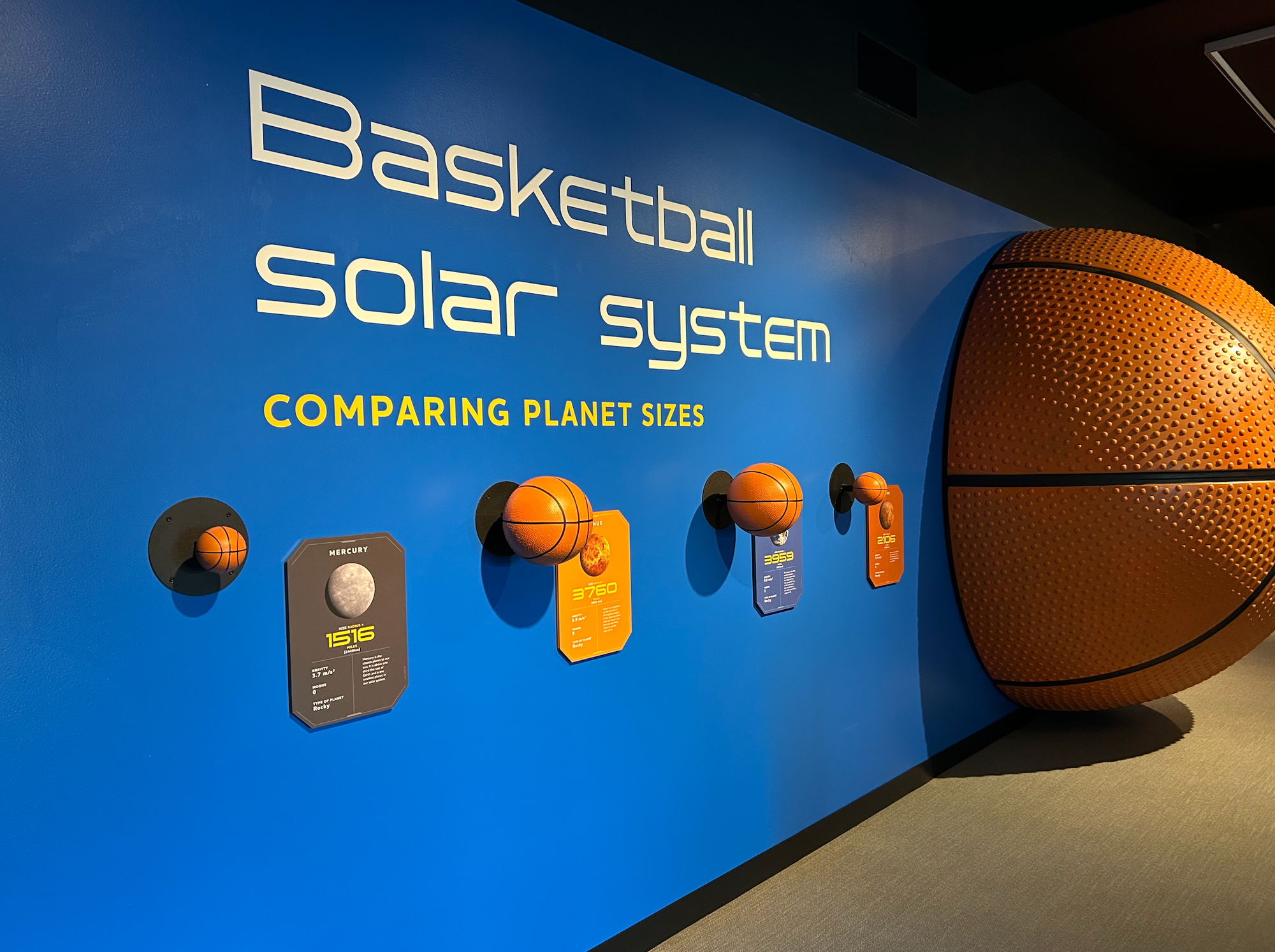 Zone 3: Mission to Planet Earth focuses on (as you might guess) exploration of earth, and includes various interactive digital exhibits, as well as a massive look at the scale of the solar system by use of basketballs.