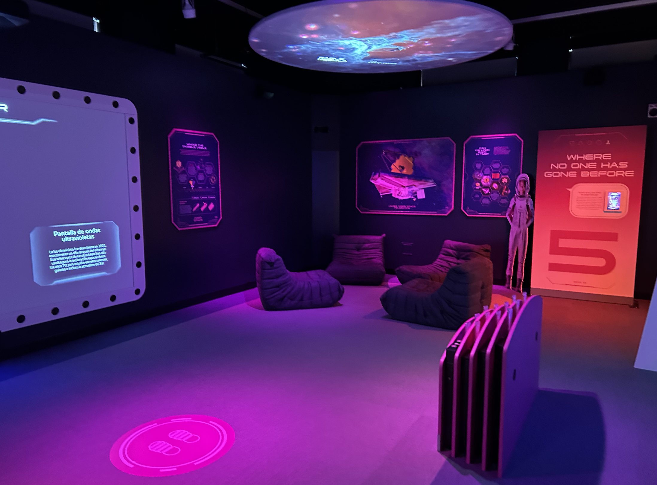 Beyond Mars, the space and technology floor takes a look to the future in Zone 5: Where No One Has Gone Before featuring images projected from the famous (and extremely powerful) James Webb telescope.