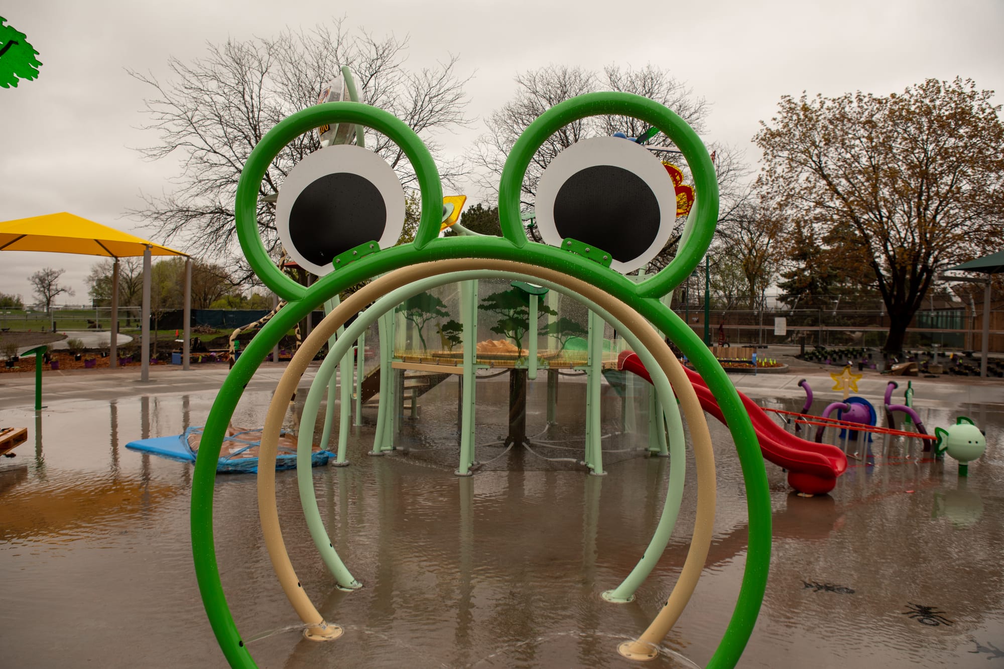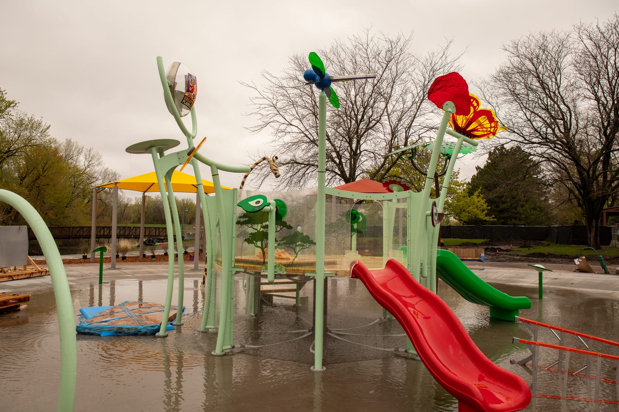 - The new area will have lots of activities for kids, including slides, sprayers and a bucket to dump water on your head. Additionally, the splash pad will also have a new year-round bathroom facility that also includes a full body dryer, as well as a family bathroom with an adult-sized changing table to increase accessibility for all visitors.