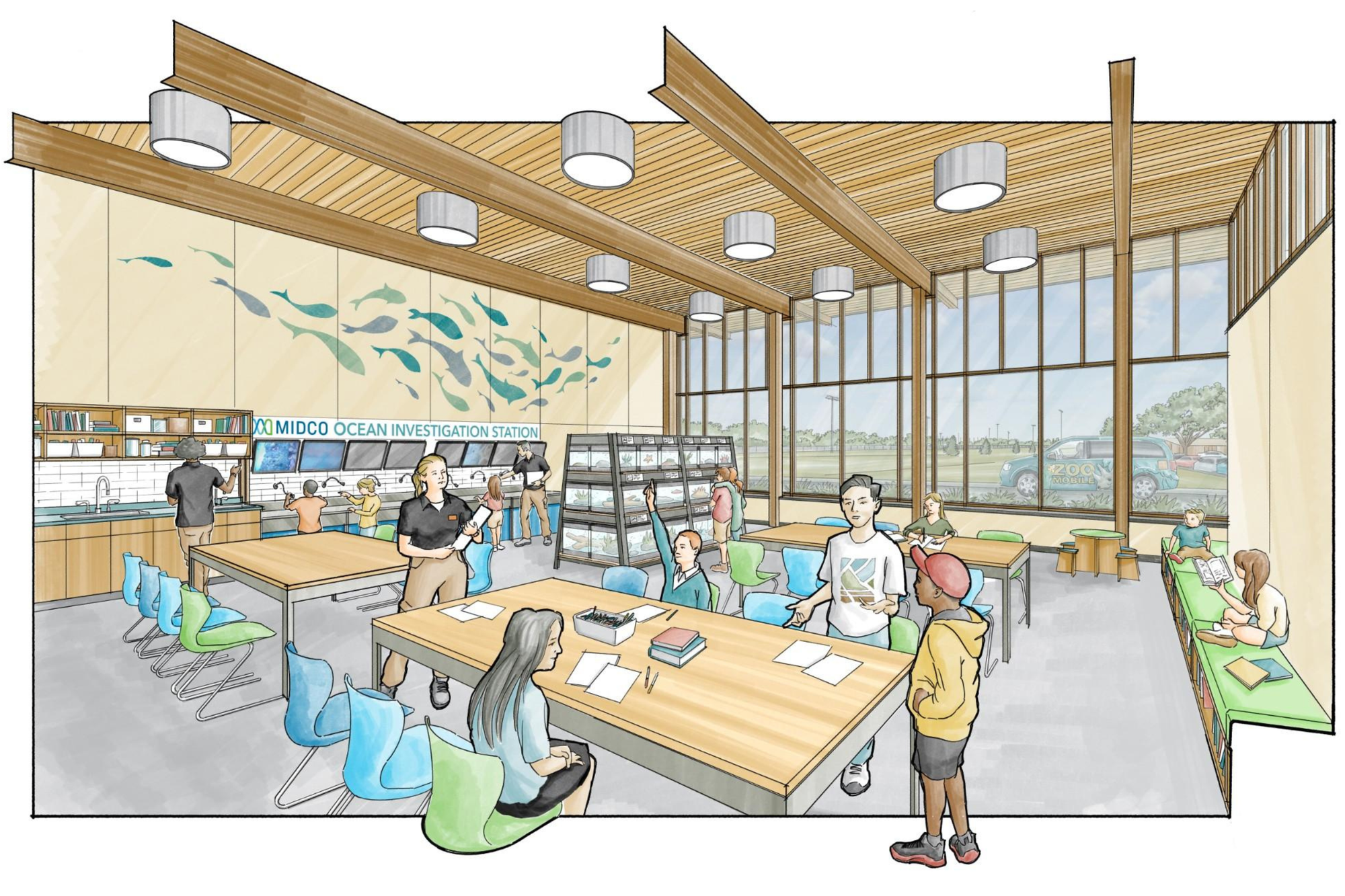 The education center will be in the same building as the new aquarium, as well as a new butterfly garden. It'll be on the portion of the zoo campus that formerly housed the Delbridge Museum β but with more space and more amenities.