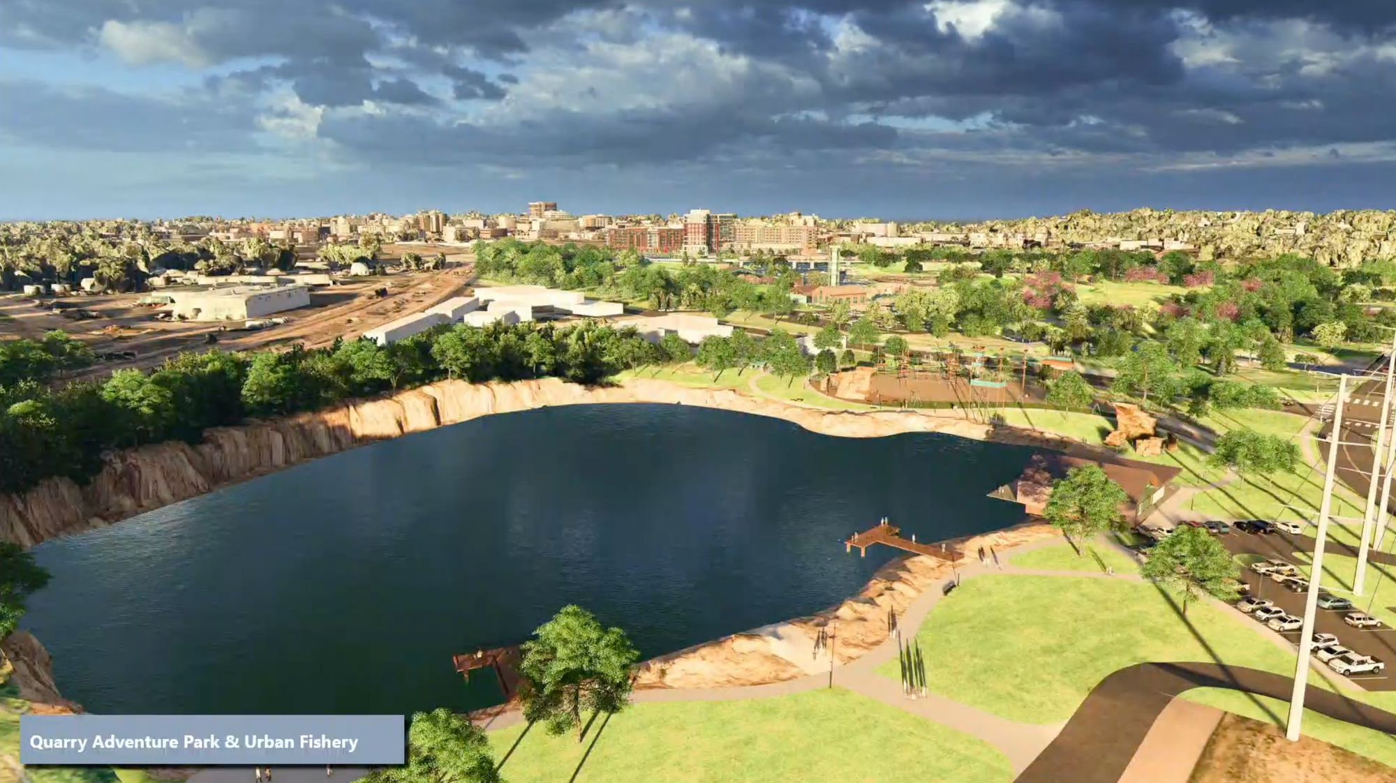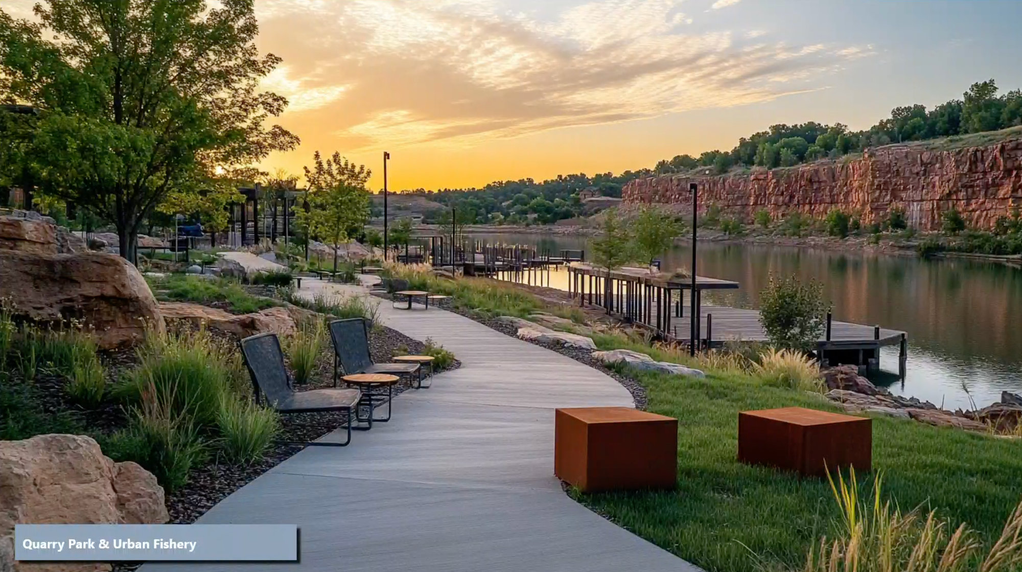 Another future vision reimagines the quarry on the east side of Weber Avenue as an urban fishing pond and a way to better connect Falls Park with the adjacent Whittier neighborhood.