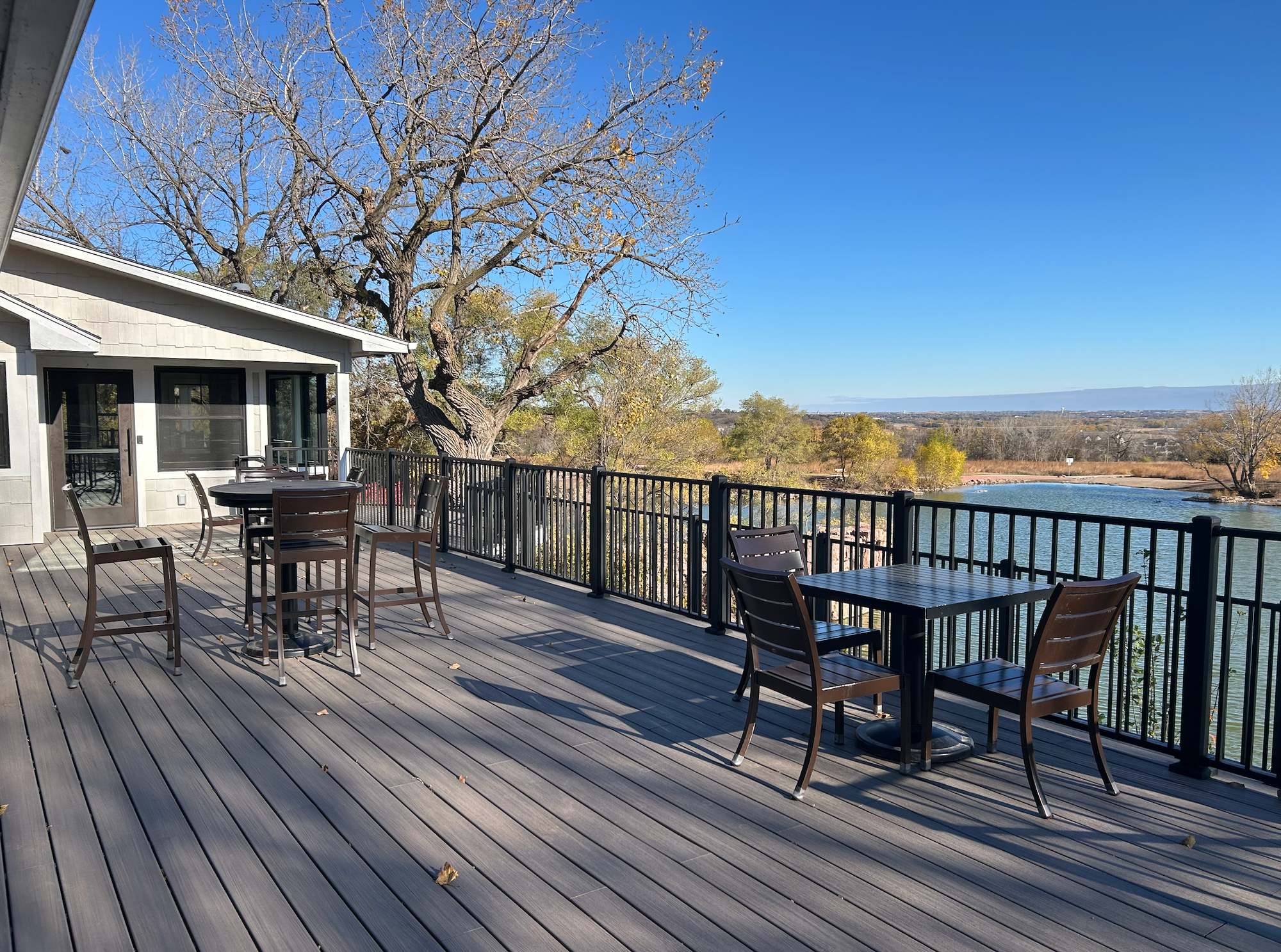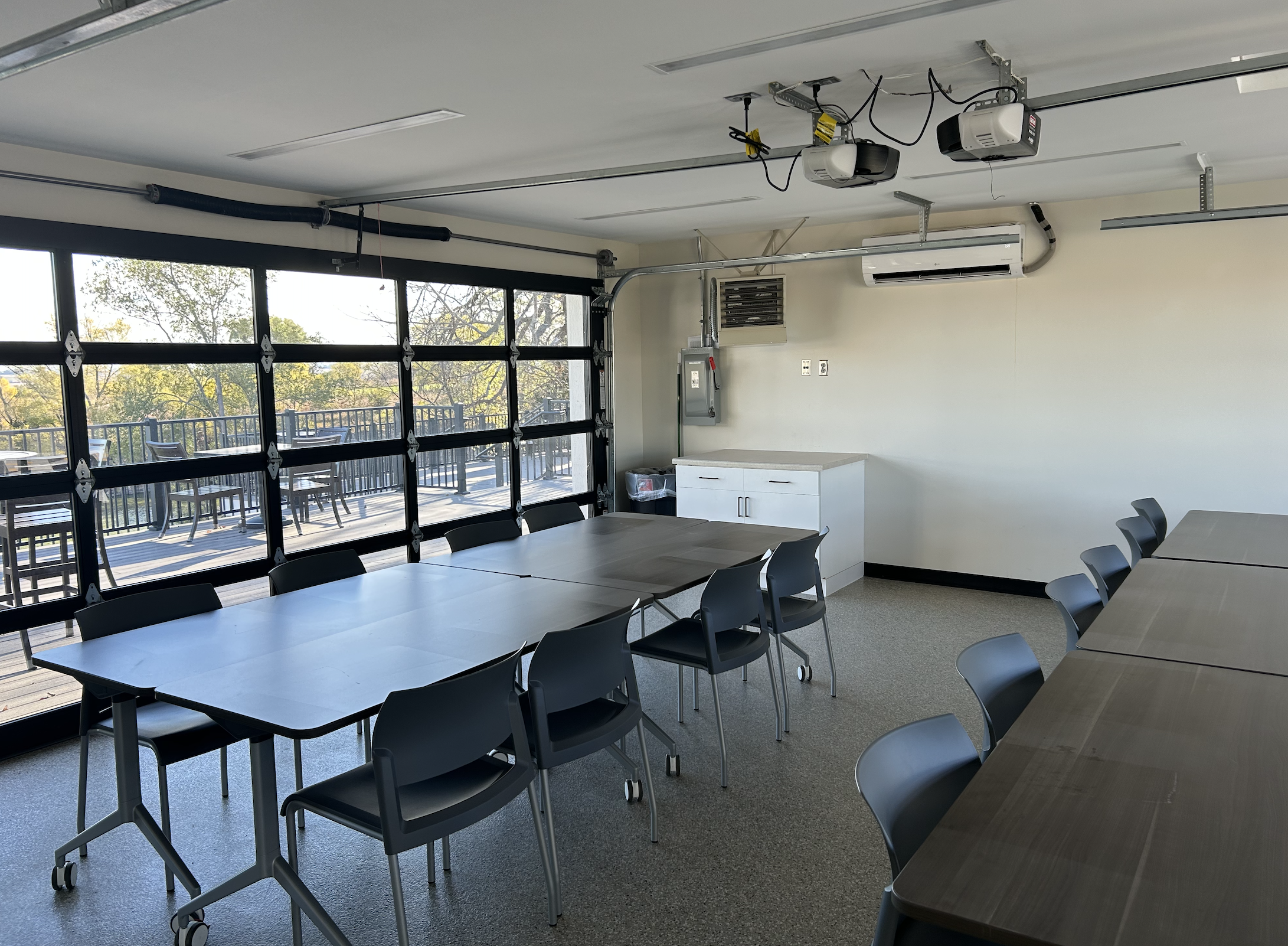 Main features include two large gathering areas inside, with a massive deck that can fit as many as 175 people.