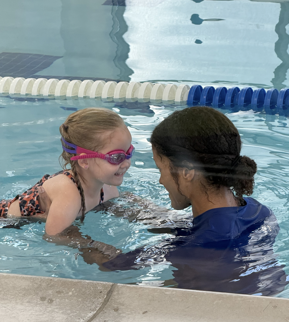 "That's key for me – having someone a face that I recognize, that my daughter recognizes," Burgess said. "She was very anxious around the water, and having someone in there she can trust was the biggest piece for me."