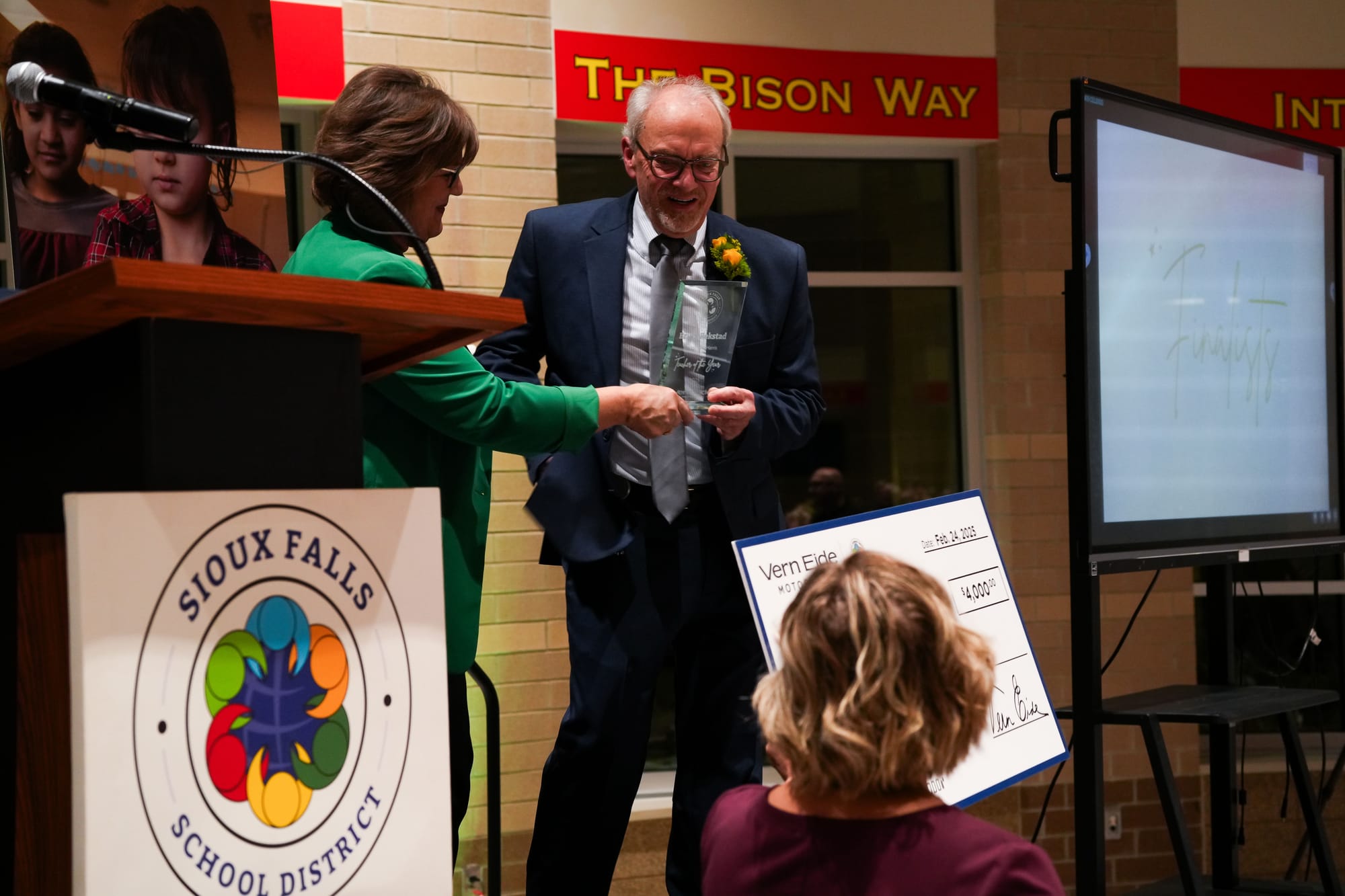 - Meet the Teacher of the Year. The Sioux Falls School District this week announced Bruce Rekstad, Očéti Šakówiŋ Owáuŋspe Instructor at Washington High School, is the 2025 Teacher of the Year. Rekstad has been teaching in the district for 23 years. Here's a snippet from his nomination form: