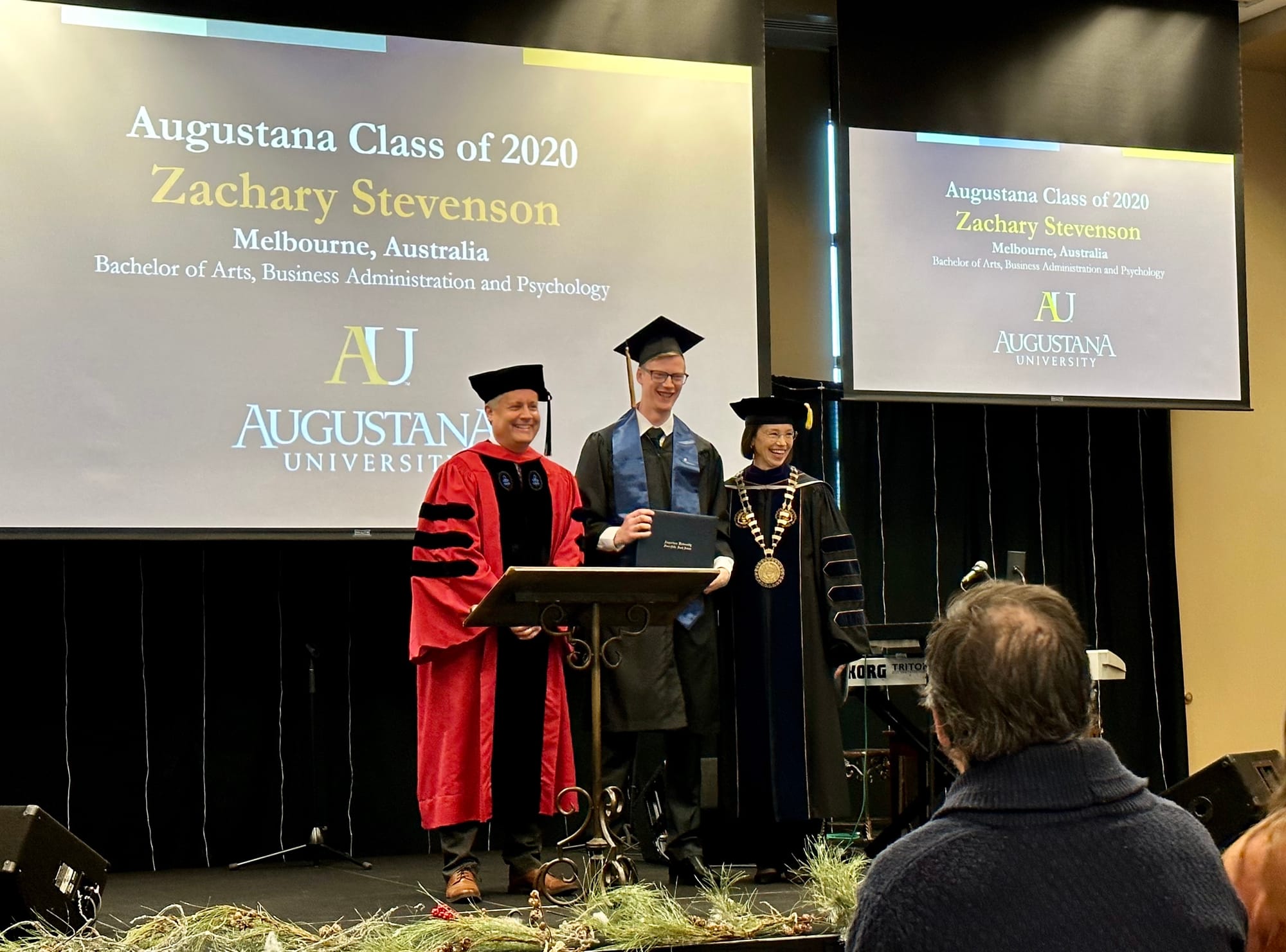 - A special graduation ceremony. An Augustana international student from Australia who graduated during the pandemic and wasn't able to walk the commencement stage got a special one-person ceremony on Thursday. Here's Zac Stevenson of the Class of 2020: