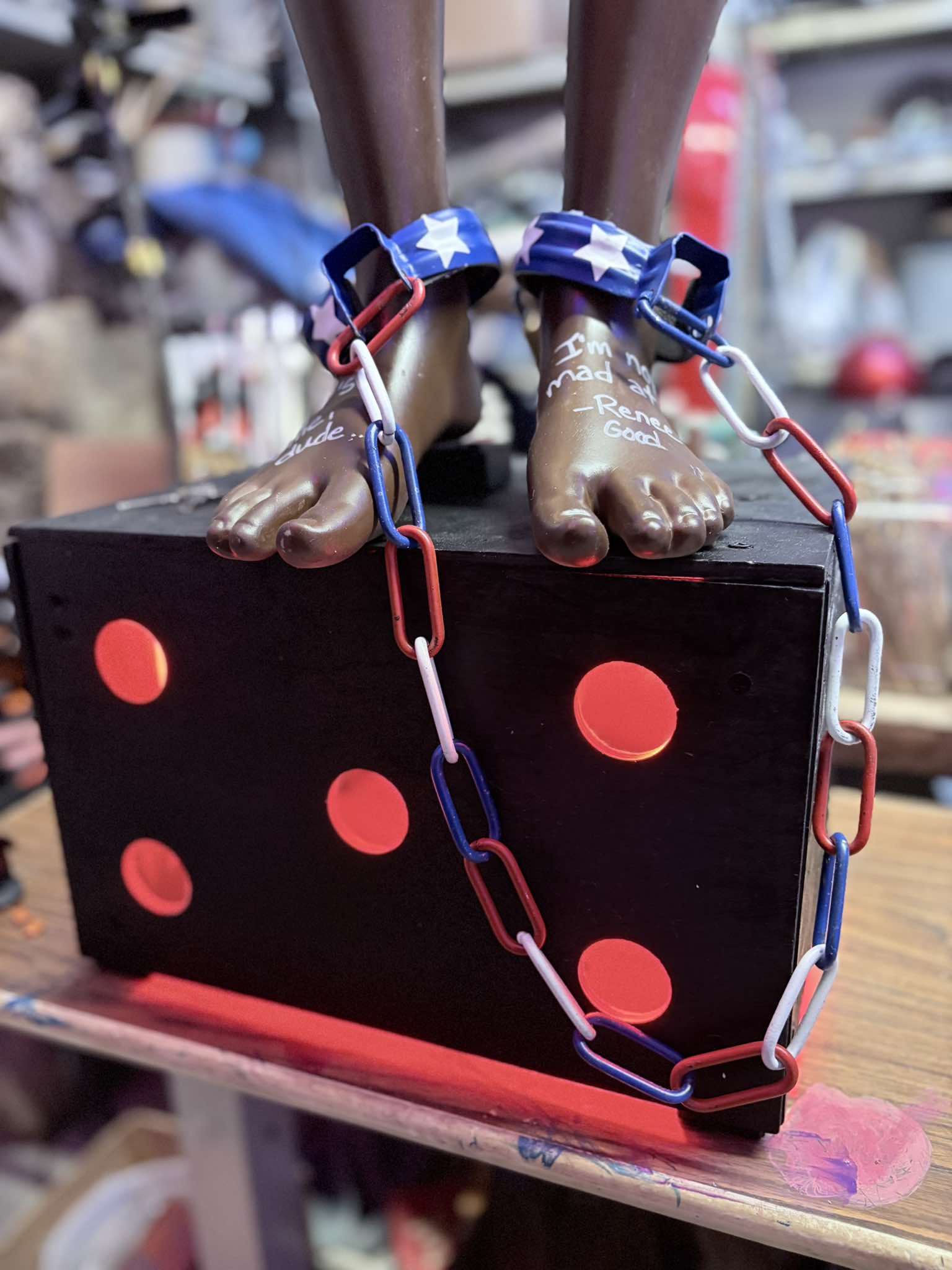 - The idea originated from Lunstra when she was scrolling Facebook Marketplace and saw a listing for dozens of mannequins β just the bottom half. She decided to purchase them and make a call for art based on a desire to speak out against the violence and death she was seeing from ICE agents in Minneapolis and elsewhere. More than 20 artists were given a mannequin to use as their canvas.