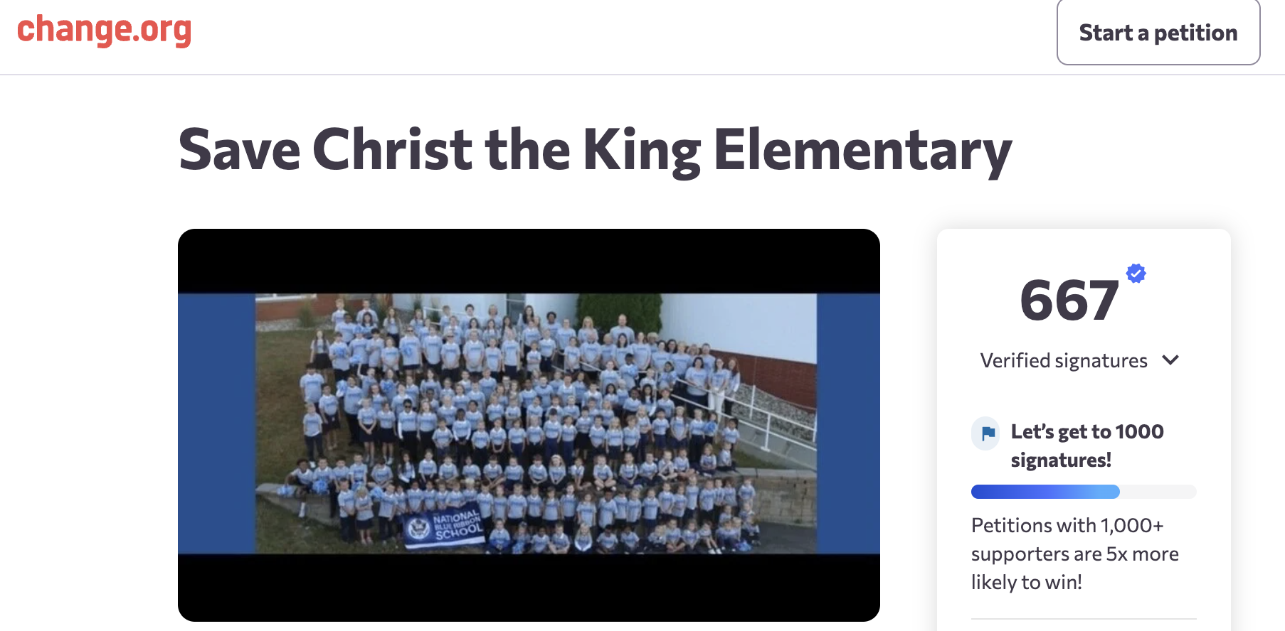Simplified: Bishop O'Gorman Catholic Schools this week announced plans to close Christ the King Elementary at the end of the current school year. But that decision faced hard and fast community pushback – including a petition that's amassed more than 650 signatures as of early Friday morning.